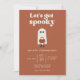 Invitation tes amis et ta famille pour devenir éffrayant cet Halloween avec ces invitations rétro inspirées! Avec un fantôme blanc simple mais charmant tenant un citrouille, dressé contre un arrière - plan brun chaleureux, cette invitation conviendra parfaitement à ceux qui aiment un mélange de style vintage et moderne. Le design ludique et la typographie audacieuse captent l'amusement et l'excitation d'Halloween, ce qui en fait un grand choix pour tout rassemblement festif. Que vous soyez l'hôte d'un événement maison hantée ou d'une soirée costumée décontractée, cette invitation donne le ton pour une nuit de plaisir et de peur !