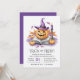 Célébrez Halloween avec une invitation de fête envoûtante mettant en vedette les éléments casquette, citrouilles et éffrayants d'une sorcière aquarelle. Cette invitation personnalisable est parfaite pour donner le ton d'un rassemblement festif et festif d'Halloween.