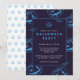 Invitation d'Halloween chic et moderne avec motifs de citrouilles dans des tons de bleu avec modèle de texte personnalisable.