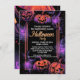 Des tourbillons à thème violet et orange et des citrouilles Jack-O-Lantern brillants avec un thème décoratif de croquis de craie. Invités Invitations à une soirée costume halloween avec cette invitation imprimée personnalisée. Des graphismes personnalisés et personnalisés avec vos détails personnalisés. Idéal pour une fête adulte, familiale ou ado qui n'est que légèrement éffrayante.