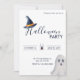Invitation Classique Neutre Halloween Party. Cette invitation comprend un casquette de sorcière aquarelle, un Fantôme aquarelle et une araignée. C'est une invitation d'Halloween moderne avec un style classique.