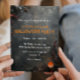 Costumes & Cocktails adulte Halloween invitation fête. Le design est composé d'arrière - plan foncé, de bois, de bougies et de crânes. Correspondance des articles de fête d'Halloween dans notre magasin. Personnalisez avec vos détails.