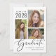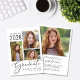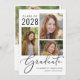 Faire-part moderne de remise de diplômes et invitation à la fête avec un collage photo de 3 images et "Graduate" dans un script élégant et le nom de la diplômée, l'année de classe et l'école ou l'université en simple typographie. Au verso, ajoutez une photo supplémentaire et les détails de la fête de remise de diplômes.
