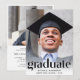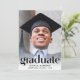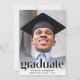 Une élégante invitation à la remise des diplômes qui met en vedette la photo de la grade surchargée de "Graduate" dans de grandes lettres branchées et leur nom, l'école et l'année de classe dans une simple typographie. Au verso, ajoutez une photo supplémentaire et les détails de votre fête.