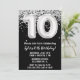 Black and white 10th Birthday party invitation age 10 anniversaire invitation avec noir blanc argent avec écriture de script moderne et ballon en papier amusant.