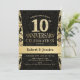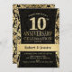Carton d'invitation pour une fête de 10e anniversaire de mariage en noir et or.