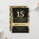 Invitation de fête d'anniversaire de mariage de 15 ans en noir et or.