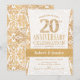 Invitation de fête d'anniversaire de mariage de 20 ans en blanc et or.