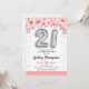 21e anniversaire invitation de fête. Design élégant en argent faux parties scintillant avec accent floral. Carte Invitation avec le numéro d'argent 21 ballons, police de script avec confetti. Corail blanc rose, blanc. Parfait pour une célébration anniversaire élégante. Message-moi si vous avez besoin d'âge personnalisé.