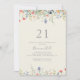 Cette invitation à la fête du 21e anniversaire de ce fleur sauvage multicolore rayonnant est parfaite pour un événement moderne. Le design est composé de fleurs sauvages de prés, de feuilles et de fleurs sauvages, rose, violet, rousses, jaunes, bleu marine, rouges, rouges, rouges, rouges, rouges, jaunes, rouges, jaunes, qui évoquent la beauté naturelle.
