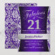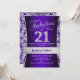 Invitation de fête du 21e anniversaire en violet et en argent. Elégante carte invitation avec fausse parties scintillant argent et diamants. Fonctionne avec un modèle damask et une police de script. Fabuleux à vingt et un ! Design classique parfait pour une soirée élégante. S'il vous plaît, envoyez-moi un message si vous avez besoin d'un âge personnalisé.