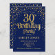 Invitation de fête du 30e anniversaire. Design élégant en bleu marine et faux parties scintillant or. Comprend des polices de caractères et des confettis stylisés. Message-moi si vous avez besoin d'âge personnalisé.