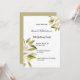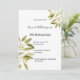 Un invitation de fête de 30 ans, élégant et simple. Devant un arrière - plan blanc chic décoré de branches botaniques vert olive, des fleurs. Modèles pour un nom, 30 ans et les détails de votre fête. Dos : vert olive couleur arrière - plan.