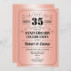 Carton d'invitation pour la fête du 35e anniversaire de mariage. Carte d'invitation corail et noire. Parfait pour une célébration élégante. Peut être personnalisé pour n'importe quelle année.