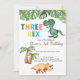 l'invitation à la fête du 3e anniversaire de trois-rex est un design mignon avec des couleurs vertes et dinosaure.