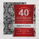 Invitation de fête d'anniversaire de mariage de 40 ans en rouge rubis, noir et argent.