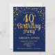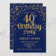 Invitation à la fête du 40e anniversaire. Design élégant en bleu marine et faux parties scintillant or. Comprend des polices de caractères et des confettis stylisés. Message-moi si vous avez besoin d'âge personnalisé.