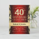 Invitation à une fête de 40e anniversaire de mariage en rouge rubis, noir et or.