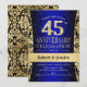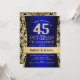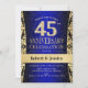 Invitation à une fête d'anniversaire de mariage de 45 ans en bleu saphir, noir et or.