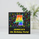 L'avant de cette conception amusante, colorée et excitante d'invitation de fête d'anniversaire comprend un grand nombre de "4" ayant un gradient de spectre arc-en-ciel inspiré motif. Il comporte également un nom personnalisé et le message "4th Birthday Party!". Une partie de l'arrière - plan a un motif amusant de divers notes de musique et des symboles ayant une variété de couleurs et de tailles. Le verso contient des informations et des détails modifiables concernant l'événement auquel les invités potentiels sont invités. Des cartes d’invitation de célébration d’anniversaire jolies et personnalisées comme celle-ci peuvent être utilisées pour inviter les invités à assister à une réunion de célébration qui a lieu pour honorer le 4e anniversaire de quelqu’un. [~Z0000427]