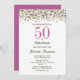 Ce simple design rose framboise "50 and Fabulous" 50e anniversaire est constitué de typographie populaire et confetti sur un arrière - plan blanc.