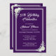 Faites de votre célébration de 50e anniversaire un événement exceptionnel avec nos invitations Élégantes à la fête d'anniversaire féminine. Ces cartes magnifiquement conçues sont dotées d'un arrière - plan violet tranquille avec une bordure à triple ligne blanche classique et des roses blanches exquises dans les coins. Le script élégant pour "50th Birthday Party" et la police serif simple pour les détails rendent la personnalisation facile et élégant. Parfaites pour les événements en famille, ces invitations offrent également un espace à l'arrière pour toute information supplémentaire. Célébrez une étape importante avec le parfait mélange d'élégance.