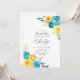 Turquoise et jaune - turquoise et citron fleur soixante-dixième invitation anniversaire avec des accents de corail avec des fleurs d'aquarelle et feuillage.
