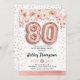 80e anniversaire invitation de fête. Design élégant en faux or rose parties scintillant avec accent floral. Carte Invitation avec numéro d'or rose 80 ballons, police de script avec confetti. Corail blanc rose, blanc. Idéal pour une célébration anniversaire de quatre-vingts ans. Message-moi si vous avez besoin d'âge personnalisé.