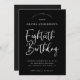 Ce design simple mais toujours si élégant présente un blanc moderne sur la typographie noire et les mots "Huitième anniversaire" dans le script de calligraphie. Les invitations renversent vers un motif Art Déco subtil et répétitif en gris chromatique et noir. Élégant raffinement et élégance, ces invitations du 80e anniversaire donneront le ton élégant à vos célébrations. Commandez des invitations Zazzle avec une variété de styles d'angle et de superbes stocks de papier ou, si vous êtes pressé, achetez la version de téléchargement numérique qui est disponible immédiatement. La vie commence à... 80 !