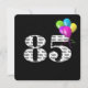 Texte en noir et blanc gras sur arrière - plan noir avec ballons colorés pour invitation de fête de 85ème anniversaire.