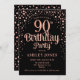 Invitation de fête du 90e anniversaire. Design élégant en or rose noir et faux parties scintillant. Comprend des polices de caractères et des confettis stylisés. Message-moi si vous avez besoin d'âge personnalisé.