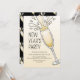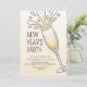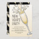 Invitation de la fête du Nouvel An avec un verre de Champagne pétillant pour cette fête du Nouvel An dans un style simple, cool et moderne.