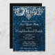 Nouvel an invitation à la fête avec des couleurs bleu et argent. Le design ornemental de la loterie en haut comprend le mot party. Vous pouvez facilement customiser le texte pour n'importe quelle occasion si vous le souhaitez. Note : Il s'agit d'art graphique et ne contient aucune parties scintillant désordonnée.