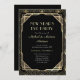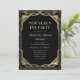 Invitation du réveillon du Nouvel An en noir et or dans un style art déco. Personnalisez avec votre propre choix de texte.