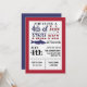 Rejoignez-nous pour une FÊTE DU POISSON du 4 juillet ! Insérez votre heure et informations. Mots formatés avec le drapeau américain et silhouette de poisson-chat bleue correspondante.