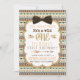 Invitation à la fête du premier anniversaire de garçon tribal sauvage avec des flèches tribales et un nœud papillon marron sur un fond de design indien amérindien du sud-ouest aztèque. Vous pouvez facilement personnaliser cette invitation d'anniversaire tribal en ajoutant simplement les détails de votre événement. Il s'agit d'une conception imprimée sans vrais nœuds, paillettes, etc.
