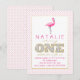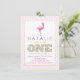 Invitation à la fête du premier anniversaire de Flamant Rose avec flamant rose et lettres en diamant doré épelant un sur un beau fond à pois rose et or. Vous pouvez facilement personnaliser ces invitations de premier anniversaire de flamant rose photo pour votre événement en ajoutant simplement les détails de votre événement dans le style de police de votre choix. Il s'agit d'une conception imprimée sans véritable feuille, paillettes, diamants, etc.