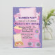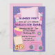 Cette invitation personnalisable de Stwood Party comporte un sac de couchage rose et des coussins, une pizza, du pop-corn et une boite de boum pour la musique pour un bon sommeil.