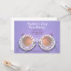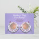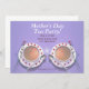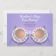 Invitations avec mon image de 2 tasses de thé avec des petites fleurs rouges sur un arrière - plan violet.