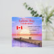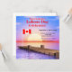 Une invitation à une fête de fin d'été pour la Fête du Travail avec un coucher de soleil et une jetée et le drapeau canadien. Modifiez le texte d'exemple pour votre propre adresse, etc. pour convenir à votre événement.
