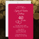 Personnalisez cette élégante et simple invitation de fête pour les 40 ans de mariage en ajoutant les noms du couple et les détails de la fête. Mes cœurs entrelacés originaux et conçus spécialement pour cette occasion mettent en valeur l'inscription moderne et stylisée "40 Ans". Personnalisez cette carte rouge rubis avec une typographie tendance pour vos besoins. Vous pouvez également changer le nombre pour une célébration de 25 ans de mariage, ou pour un 10ème anniversaire de mariage, un 50ème ou un 60ème anniversaire de mariage ou tout autre anniversaire de mariage. Ce serait une invitation de fête d'anniversaire de mariage romantique et charmante. Consultez ma collection pour une décoration de table et de la verrerie assortie rouge rubis pour les 40 ans de mariage.