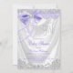 Invitation élégante pour baby shower lavande avec satin blanc et jolies perles et nœud diamant violet sur fond de satin blanc. Cette belle invitation pour baby shower violet et argent est facilement personnalisable pour votre événement en ajoutant simplement vos informations dans le style de police et la couleur et la formulation de votre choix.