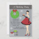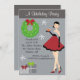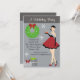 Vous planifiez un jour férié ou une fête de Noël ? Cette invitation est posée sur un arrière - plan gris clair avec une bande de gris plus foncé et épais sur le dessus. Elle a une fille aux cheveux noirs courts portant une robe de soirée rouge & noir courte debout dans ses chaussures à talons hauts. Il y a deux cadeaux au coin avec un nid de couronne verte pour elle. Découvrez les nombreux autres designs et produits que nous avons. ©Riefka Designs