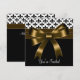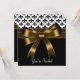 Fleur de Lis élégante noire et blanche avec un nœud doré brillant, invitation pour fête. Ce modèle de design convient bien comme invitation pour un anniversaire, une soirée cocktail, une fête de vacances, une soirée d'entreprise, un gala, un bal de promo, une fête de retraite, une fête de fin d'études, une soirée entre filles, une fête de fiançailles, un mariage, une soirée du Nouvel An et toute autre occasion spéciale. Ajoutez vos informations au recto et au verso en cliquant simplement sur le bouton orange "Personnalisez-le !" pour commencer à ajouter les détails de votre événement, le style, la taille et la couleur de la police, ainsi que le texte. Cartes d'invitation de fête avec fleur de lis dorée. Veuillez noter que toutes les conceptions d'invitations que vous trouverez sur Zazzle sont des graphiques imprimés sur du papier plat, sans véritables
