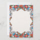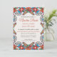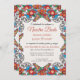 Cette invitation de mariage espagnole botanique Fleurs colorées Fiesta présente une disposition florale audacieuse et complexe avec des fleurs rouges, bleues, orange et vertes vibrantes, créant une bordure symétrique accrocheuse en haut et en bas de la carte. Les grappes florales sont encadrées par des motifs élégants de fougères noires, ajoutant du contraste et de la profondeur aux floraisons colorées. Le design combine des éléments d'art folklorique traditionnels avec une modernité vibrante, ce qui le rend parfait pour une occasion festive et célébratoire comme un mariage.