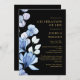 Cette élégante célébration florale bleue noire et or de la vie et invitation à la mémoire peut être personnalisée avec votre information dans la typographie classique. Conçu par Thisisnotme©