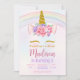 Invitation Fête Licorne Arc-en-ciel Fleurs Or Rose Violet