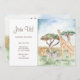 Ajoutez un thème safari personnalisé adorable à la fête de votre petite fille ou garçon avec cette jolie invitation d'anniversaire d'animaux africains aquarelle. L'invitation comprend une maman et son bébé girafes, zèbres et lions dans un arrière-plan de savane africaine. Il y a également un espace pour le texte personnalisé.