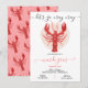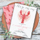 Cartes d'invitation modernes et funky pour la fête de l'ébullition d'écrevisses. Caractéristiques d'une grande écrevisse prête à devenir folle pour la fête de Mardi Gras ! Couleurs rouge, orange et blanc.