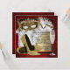 L'élégante invitation à la mascarade d'anniversaire rouge et or de la femme avec de belles chaussures à talon haute parties scintillant d'or et un élégant et orné masque mascarade or et verre de champagne sur un joli arrière - plan rouge, noir et or.. Cette invitation à la mascarade rouge, noir et or est facilement customisée pour votre fête ou événement en ajoutant simplement les détails de votre événement, le style de police, la taille et la couleur de police et le libellé. Veuillez noter que tous les modèles d'invitation que vous trouverez sur Zazzle sont des graphiques imprimés sans bijoux, arcs, parties scintillant, etc.